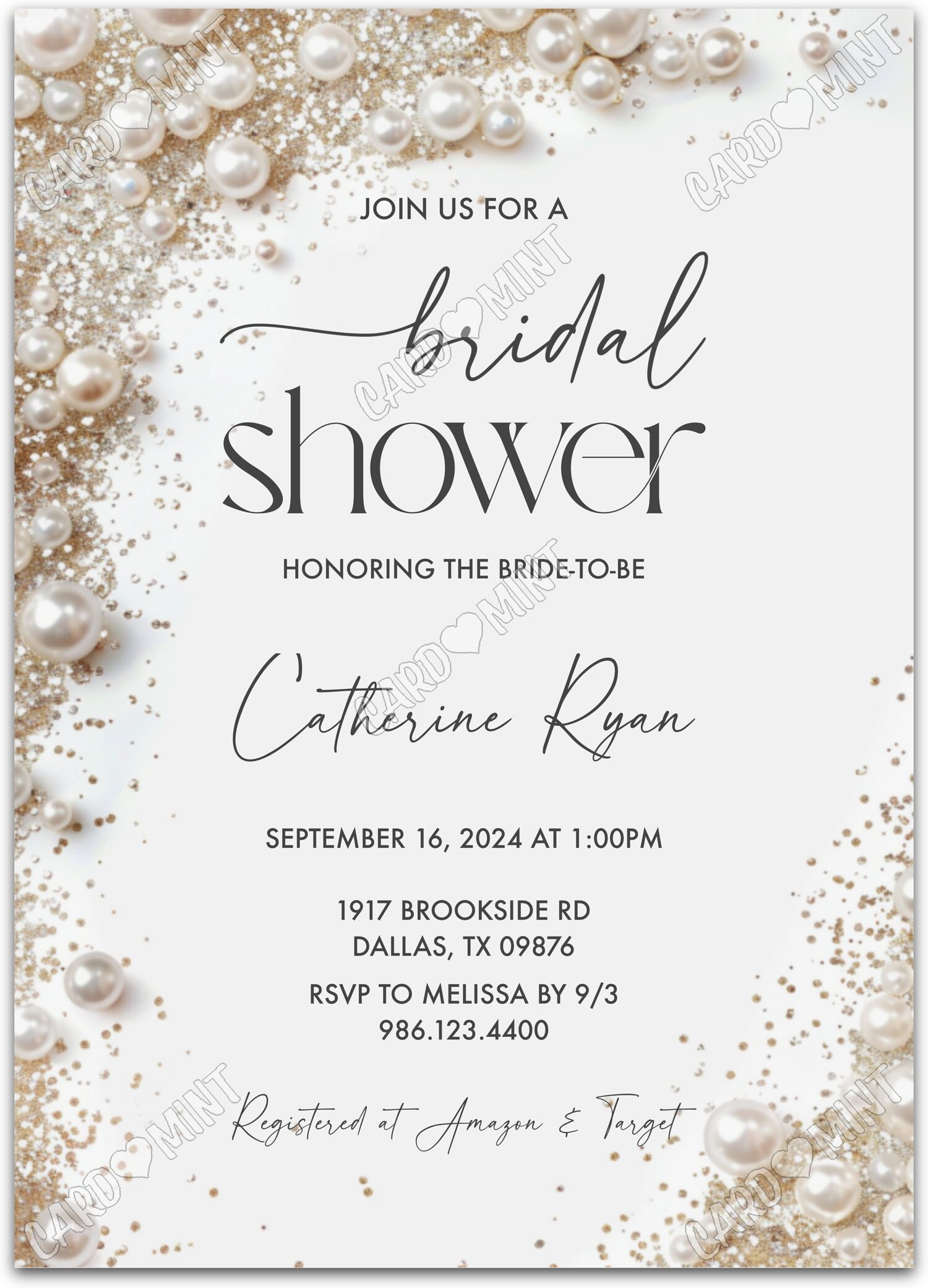 Host a successful bridal shower starting with this pearls white invite! The printed dimensions are 5"x7".