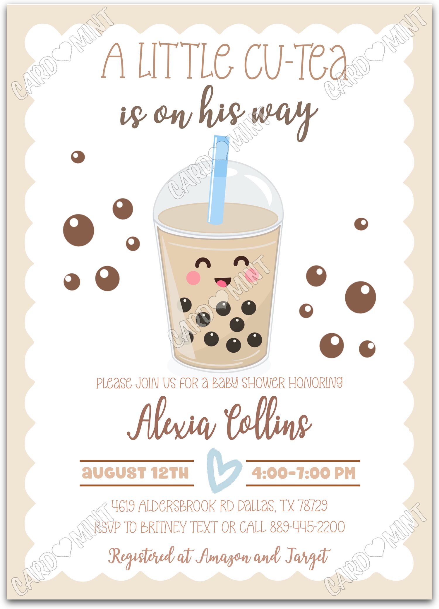 Host a successful baby shower starting with this bubble tea tan invite! The printed dimensions are 5"x7".