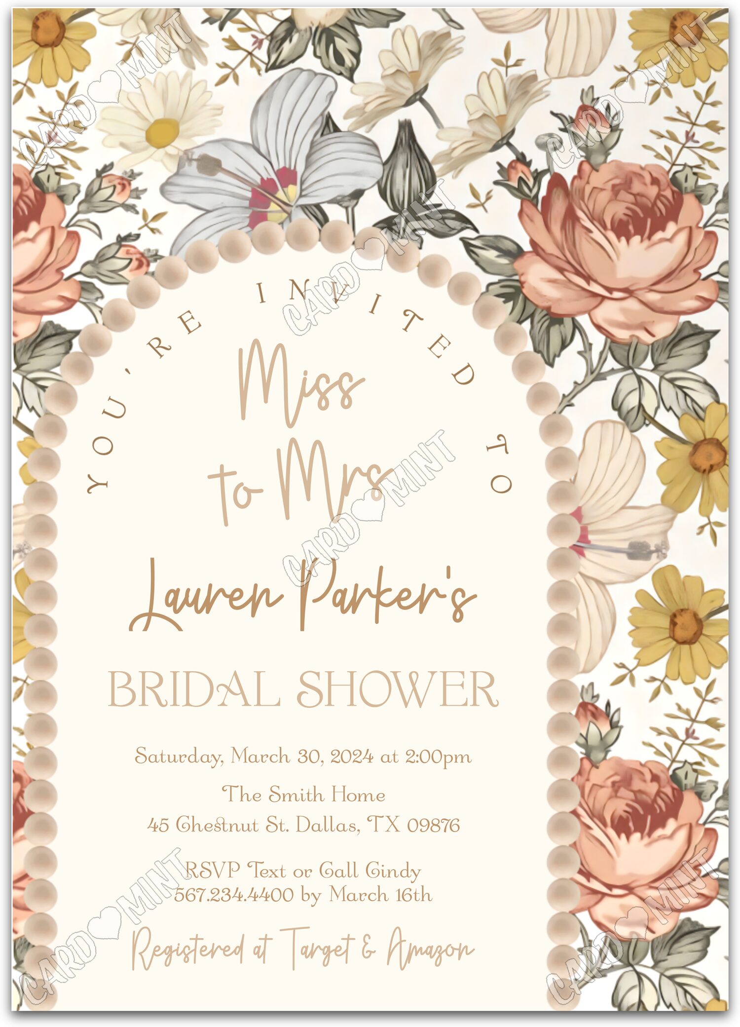 Host a successful bridal shower starting with this floral orange/green invite! The printed dimensions are 5"x7".