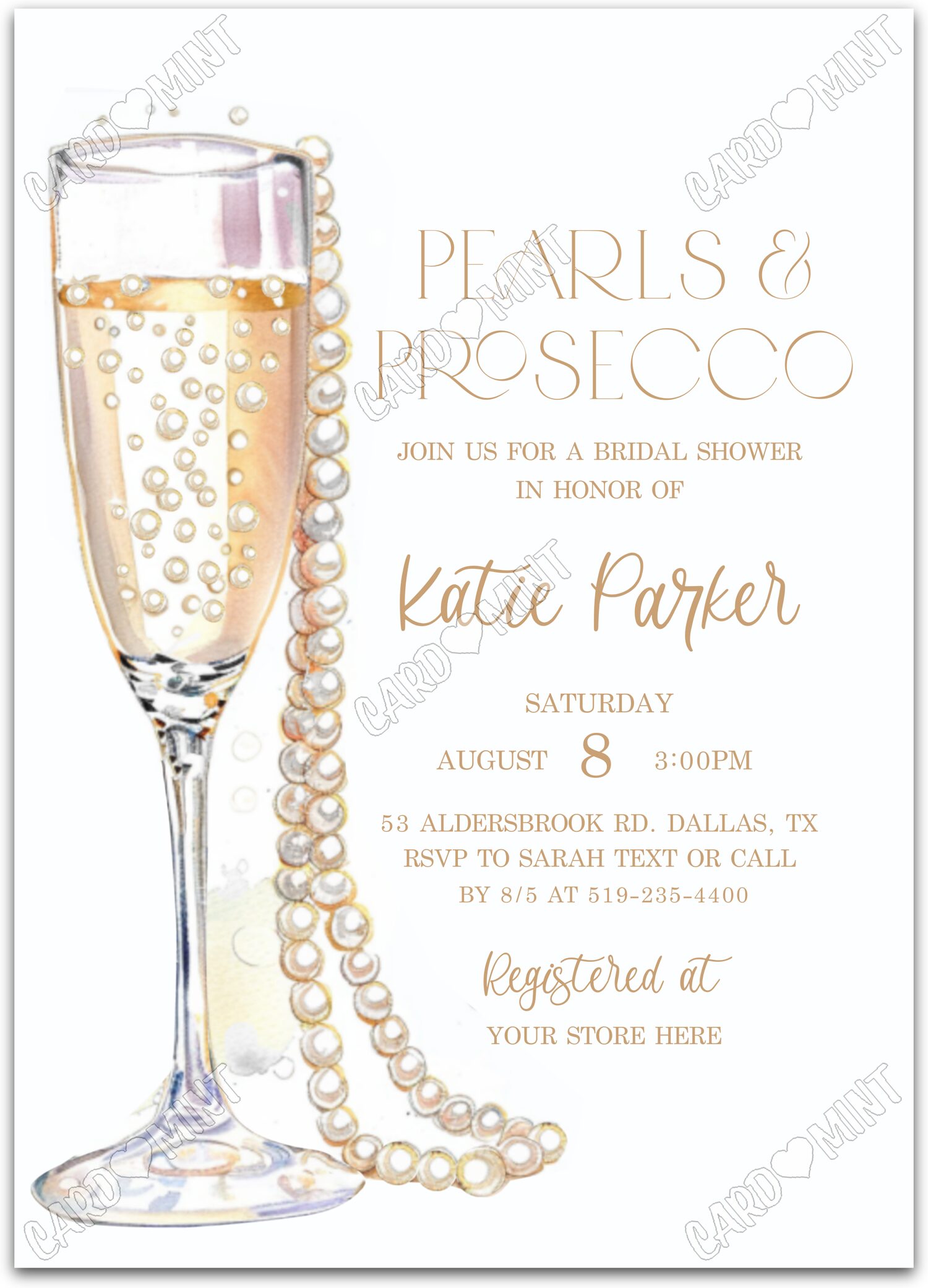 Host a successful bridal shower starting with this wine & pearls rose invite!