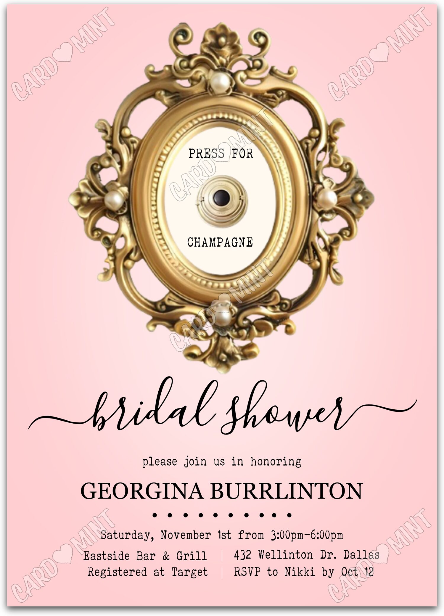 Host a successful bridal shower starting with this vintage doorbell pink invite! The printed dimensions are 5"x7".