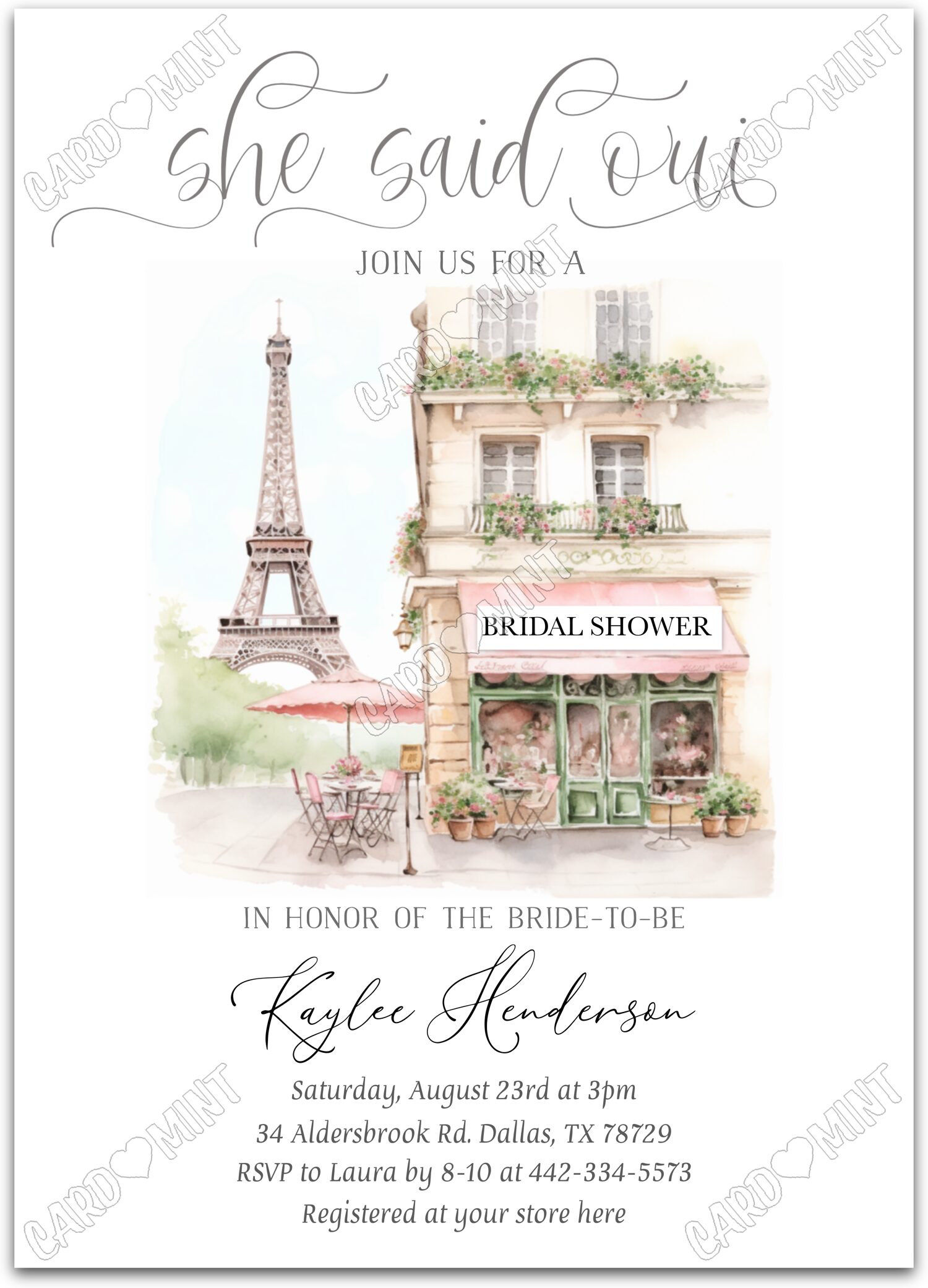 Host a successful bridal shower starting with this Paris Eiffel Tower white invite! The printed dimensions are 5"x7".