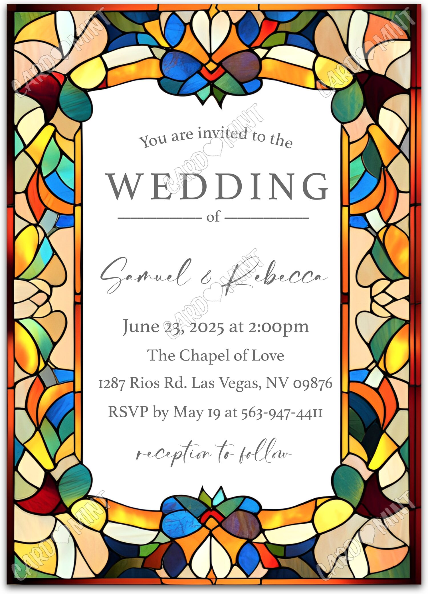Host a successful wedding ceremony starting with this geometric pattern white invite! The printed dimensions are 5"x7".