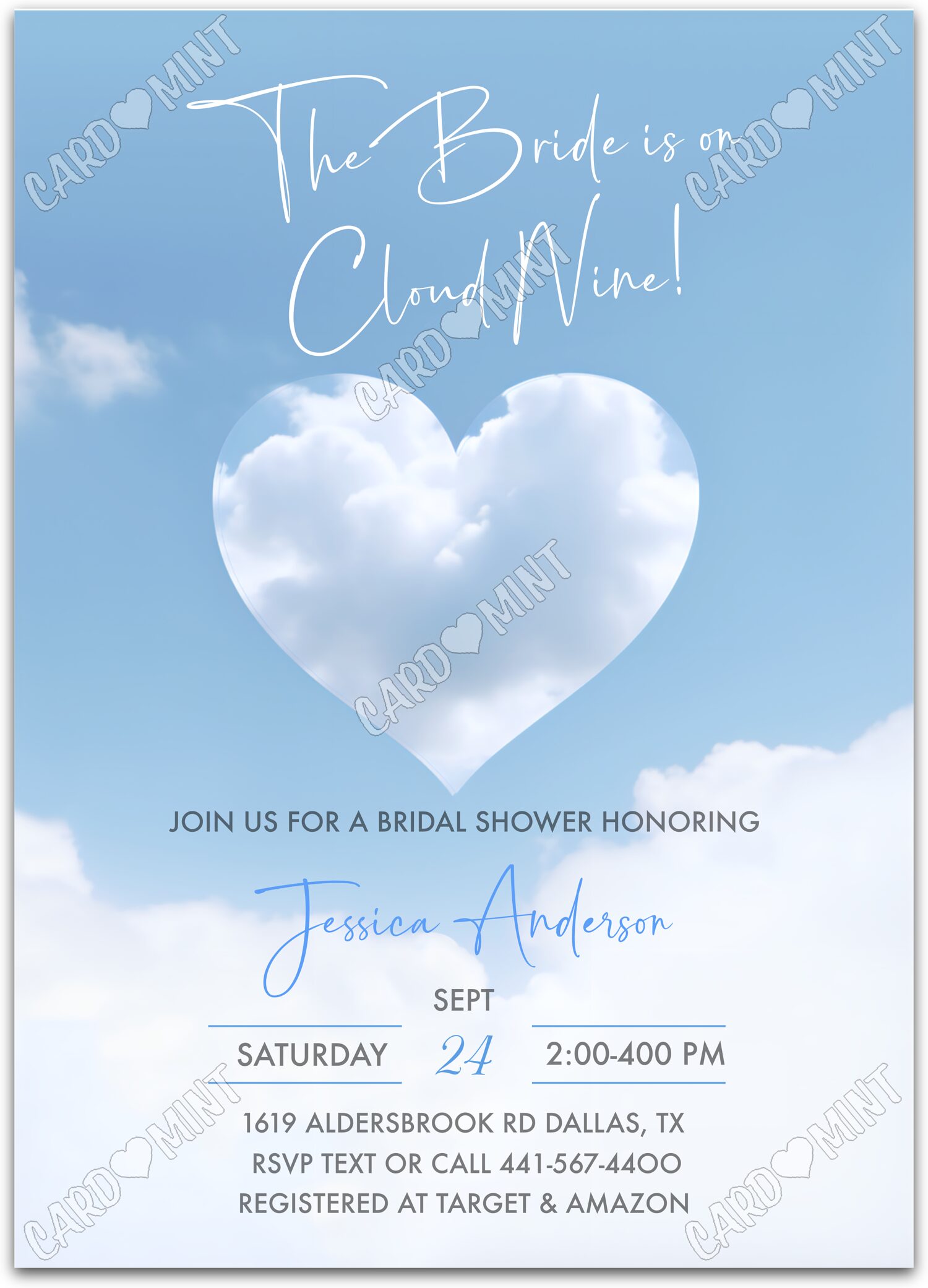 Host a successful bridal shower starting with this clouds blue invite! The printed dimensions are 5"x7".