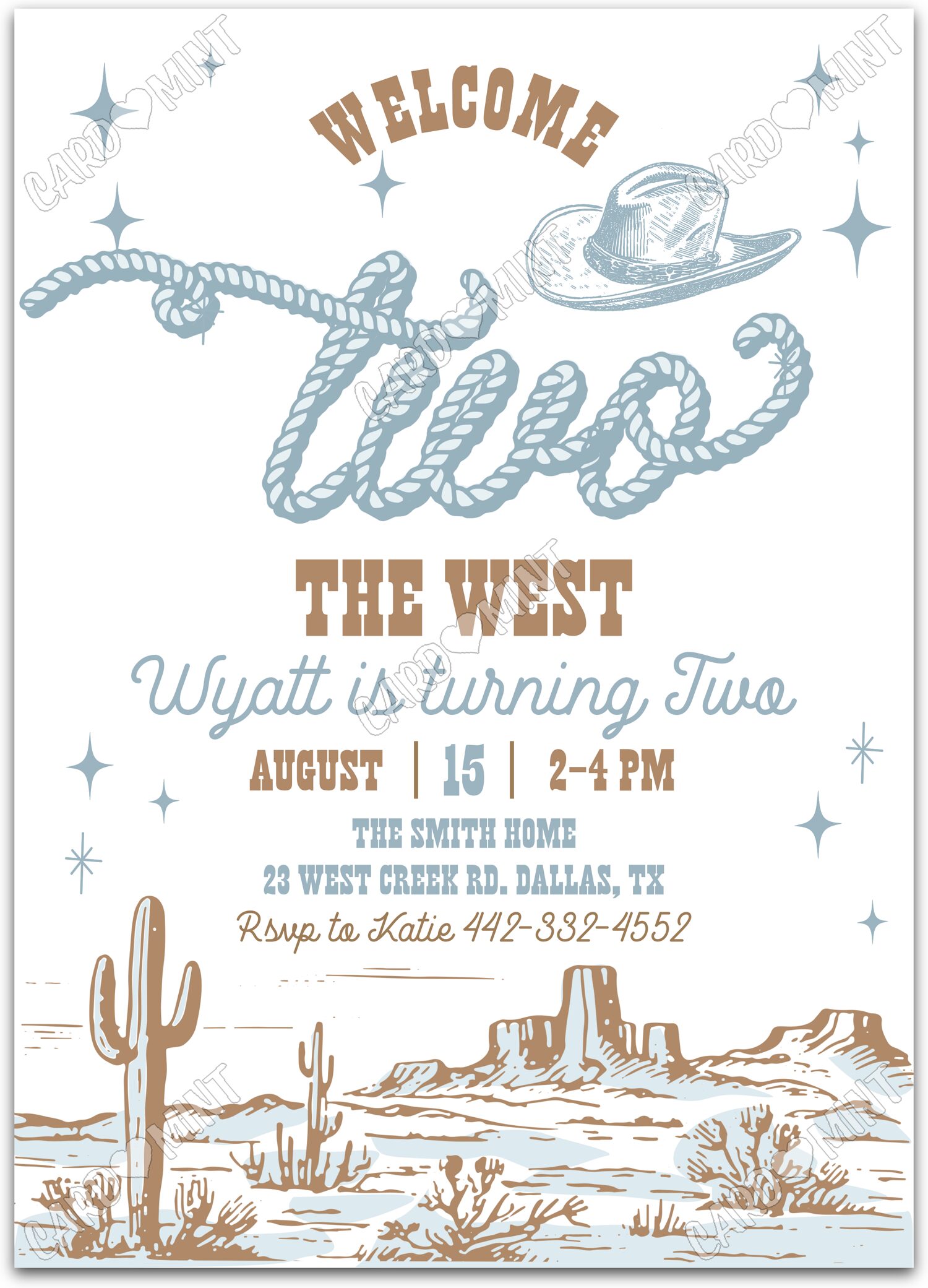 Host a successful 2nd birthday party starting with this desertscape white invite! The printed dimensions are 5"x7".